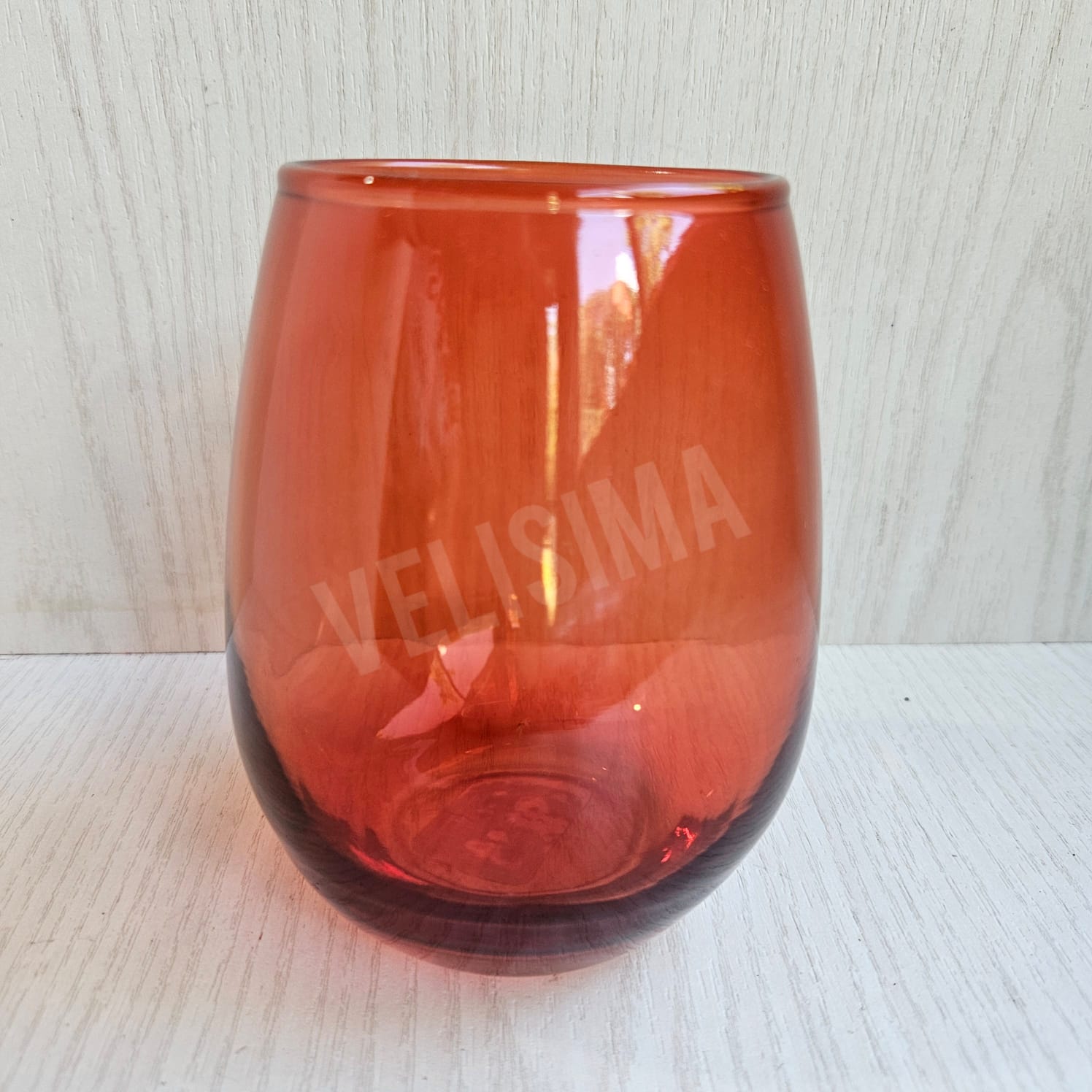 Envase de vidrio fume color rojo. sus medidas aproximadas son de 12,5cm de alto x 8,5cm de ancho, y tiene una capacidad de 480grs. Ideal para la elaboracion de velas de cera de soja.
