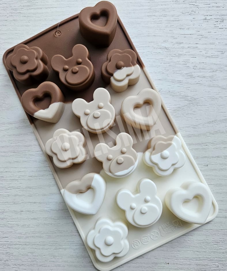 MOLDE DE SILICONA BOMBONES CORAZONES Y OSITOS