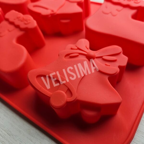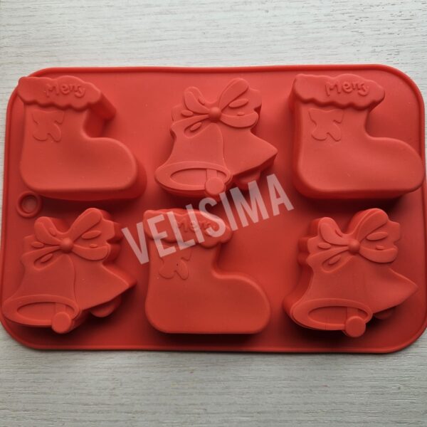 MOLDE DE SILICONA NAVIDAD BOTA Y CAMPANAS
