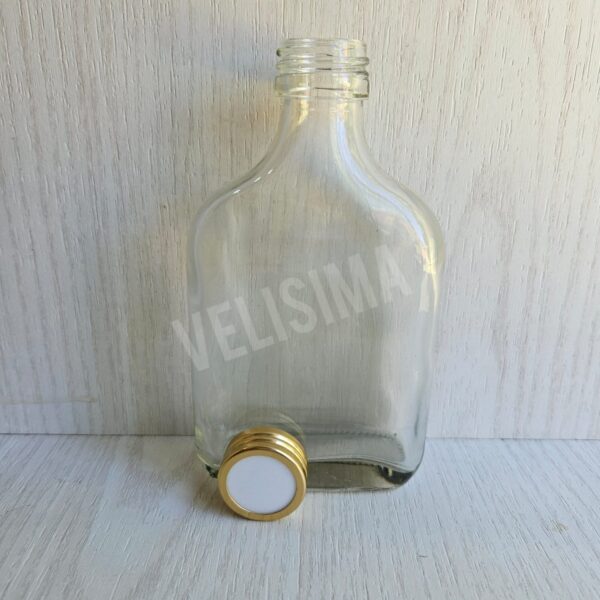 Petaca de vidrio con tapa difusora premium dorada . Su boca es nro 28. El precio es por unidad. Su capacidad es de 200cc