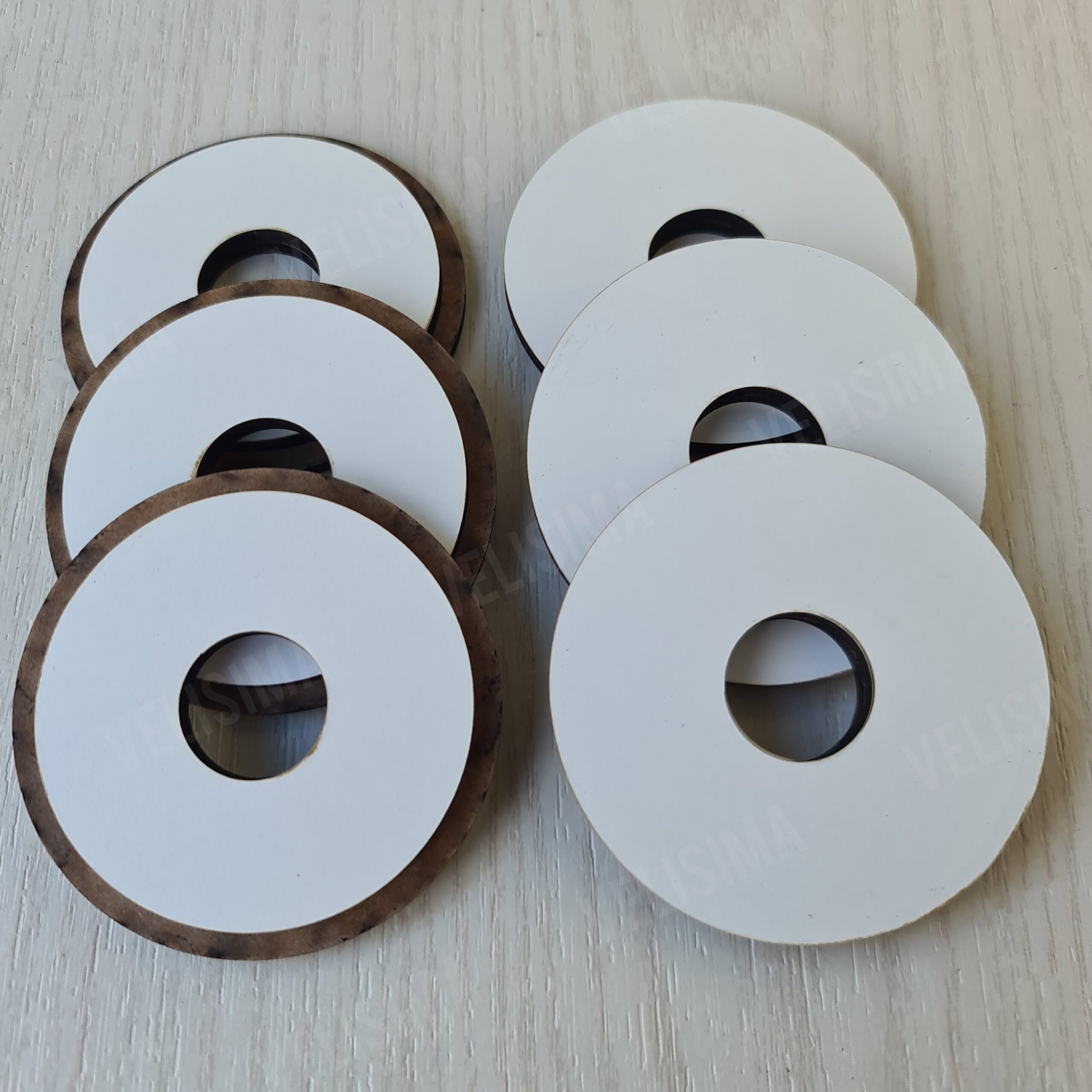 Tapas de madera fibrofacil blanco perforadas ideales para los envases bombe. El precio es por unidad